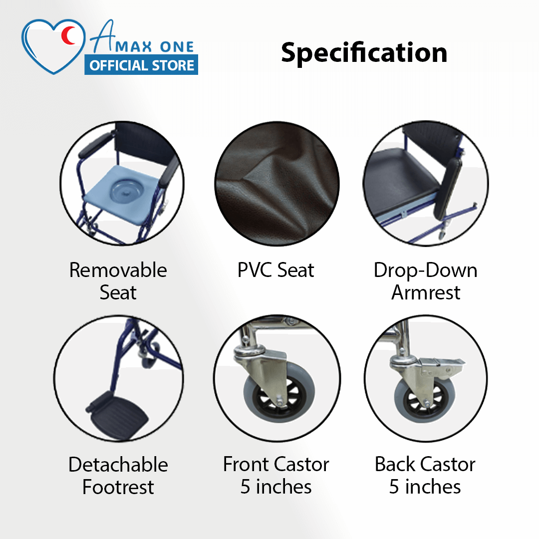 - Use as commode and indoor wheelchair