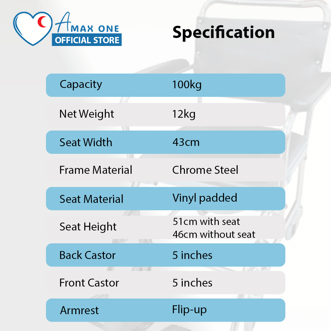 - Seat height: 51cm (With Padded Seat), 46cm (Without Padded Seat)